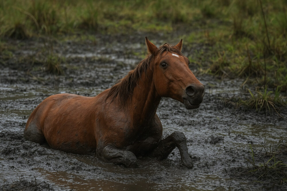 沼にハマった馬のような