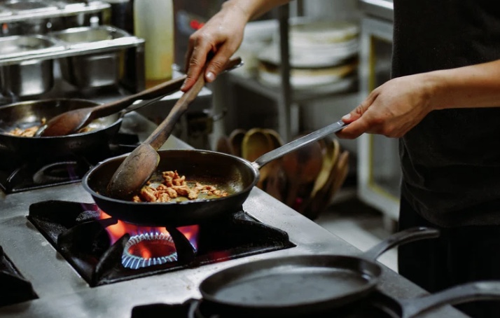 鉄製のフライパンで炒めた