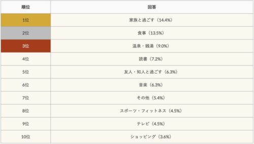 3位に温泉・銭湯がランクイン