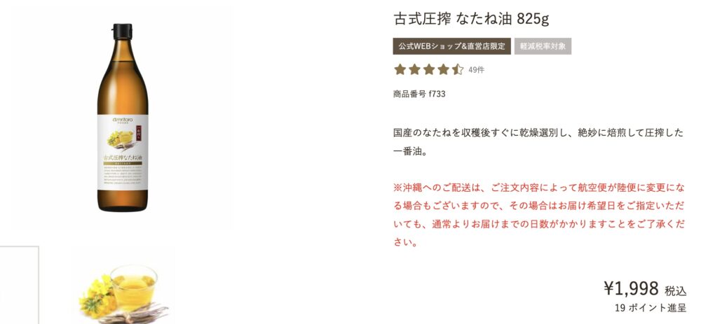 菜種油では826gで約¥2000します