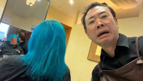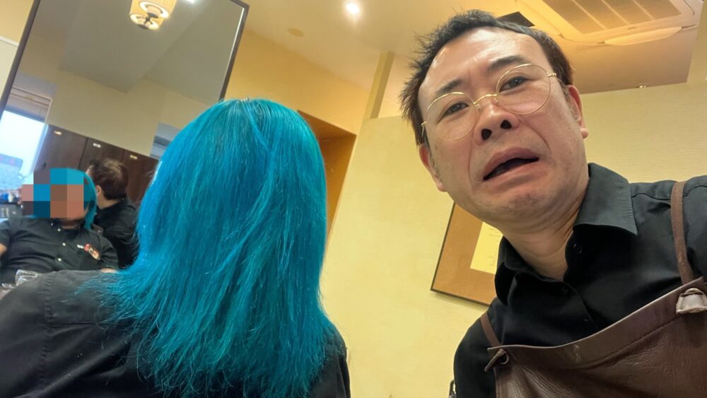 男性で髪を🟦色にして