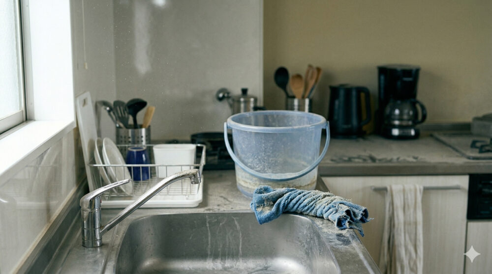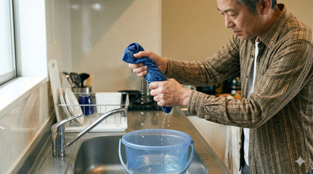バケツから絞ったばかりの雑巾から