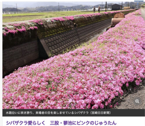 河川沿いのシバザクラが見頃です