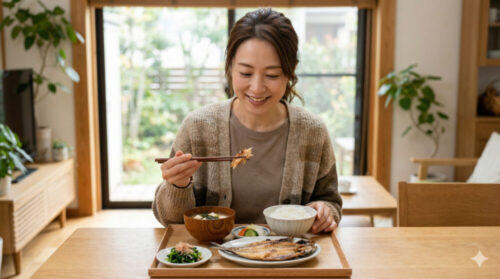 ご飯と味噌汁と干物でも食べて