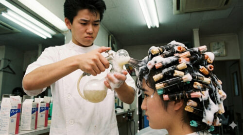 パーマ液を頭にかけていました